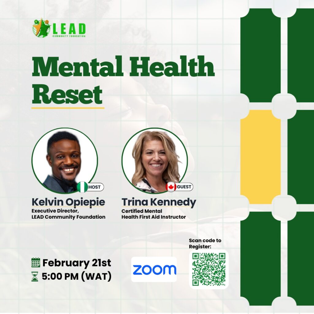 The LEAD Monthly Webinar for February will focus on Mental Health Reset, a session designed to help participants pause, reflect, and realign their mental and emotional wellbeing. The webinar will be facilitated by Kennedy, a strong supporter and brand ambassador of LEAD Community Foundation, who brings experience and insight into mental health advocacy.